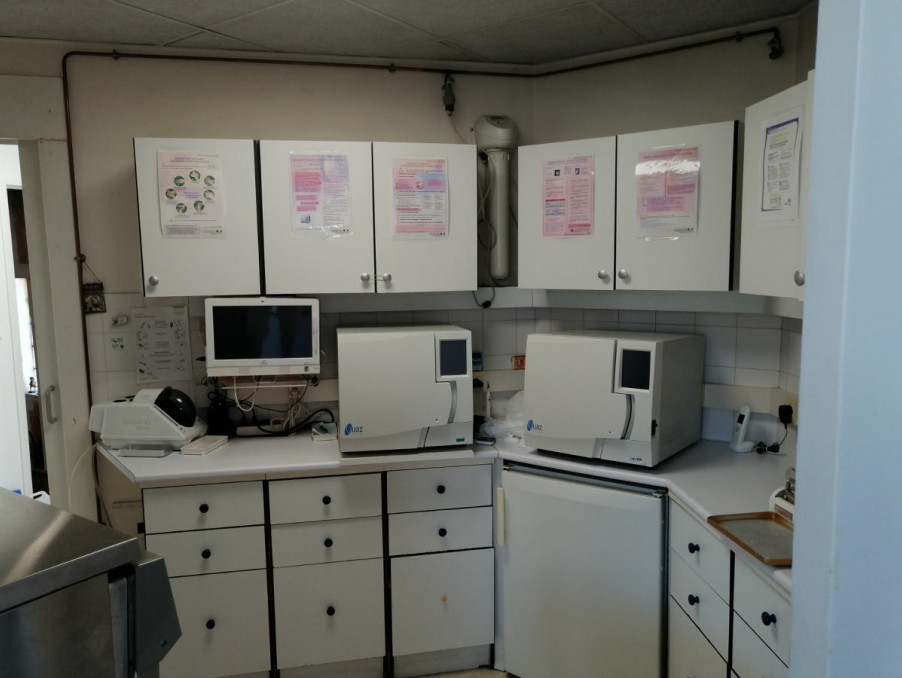 Trois salles de soins, une salle de chirurgie, une salle stérilisation, une salle radio, une entrée, un local compresseur et aspiration, un local technique et une grande salle d'attente.